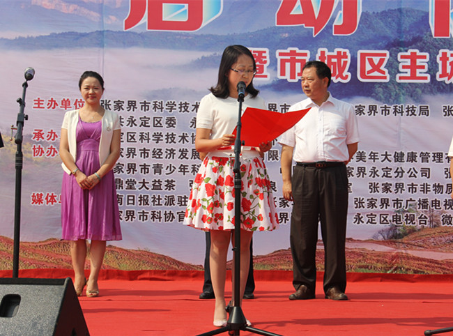 启动仪式上,以崇实南校学生代表的一首以“创新驱动发展,圆旅游胜地梦想”为题的精彩献词拉开了序幕,随后,永定区委副书记程漫致辞,市政府副秘书长田际陆通报了全市27届青少年科技创新大赛和全市第四届鸽子花科技创新奖评选结果,并对12位获奖学生代表进行了表彰。市人大常委会党组副书记、副主任陈红日代表市委、市人大、市政府、市政协对活动顺利启动表示热烈祝贺,对所有关心支持我市科普事业发展的广大科技工作者、科普工作者和社会各界人士表示衷心感谢。陈红日在讲话中强调,各级科协组织要紧紧围绕中心工作,以开展全国科普日活动为契机,大力普及科学知识,倡导科学方法,传播科学思想,弘扬科学精神,努力实现科普与公众的良性互动,不断提高人民群众的科学文化素质,努力形成学科学、用科学、爱科学的社会风气和民族精神,为早日实现“旅游胜地梦全面小康梦”凝聚正能量。