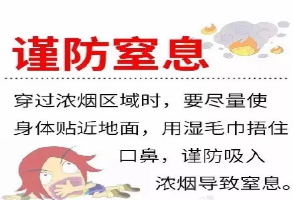 4、穿过浓烟逃生时,要尽量使身体贴近地面,并用湿毛巾捂住口鼻。
